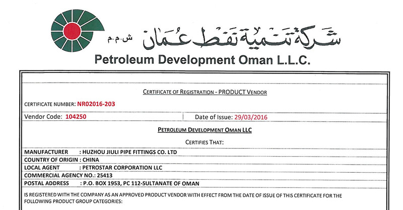 熱烈祝賀久立管件通過阿曼石油開發公司(PDO)批準供應商認證